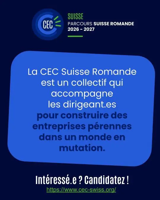 Fort d'un 1ᵉʳ parcours réussi, la CEC Suisse - Parcours Suisse Romande (Convention des Entreprises pour le Climat) lance son 2ᵉ parcours. Un parcours pour adopter un regard systémique, se fixer un nouveau cap et le vivre au sein d'un collectif engageant.