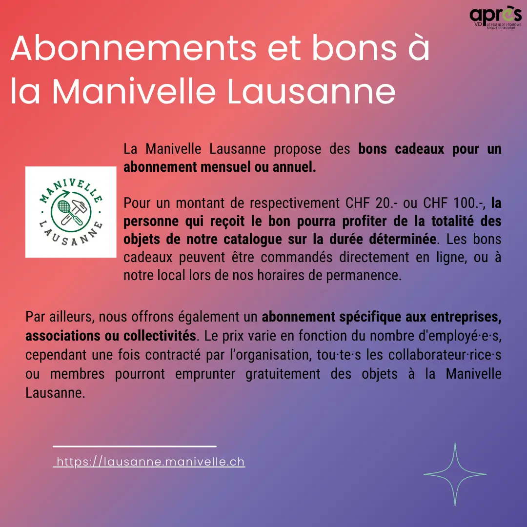 ➡️ Des abonnements ou bons cadeaux à la Manivelle Lausanne