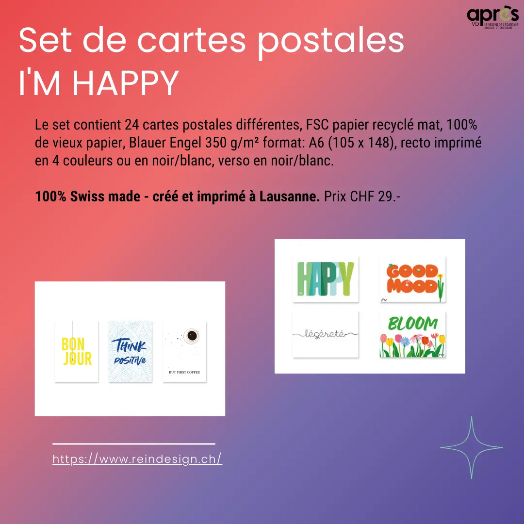 ➡️ Des cartes postales I'M HAPPY de chez Reindesign.