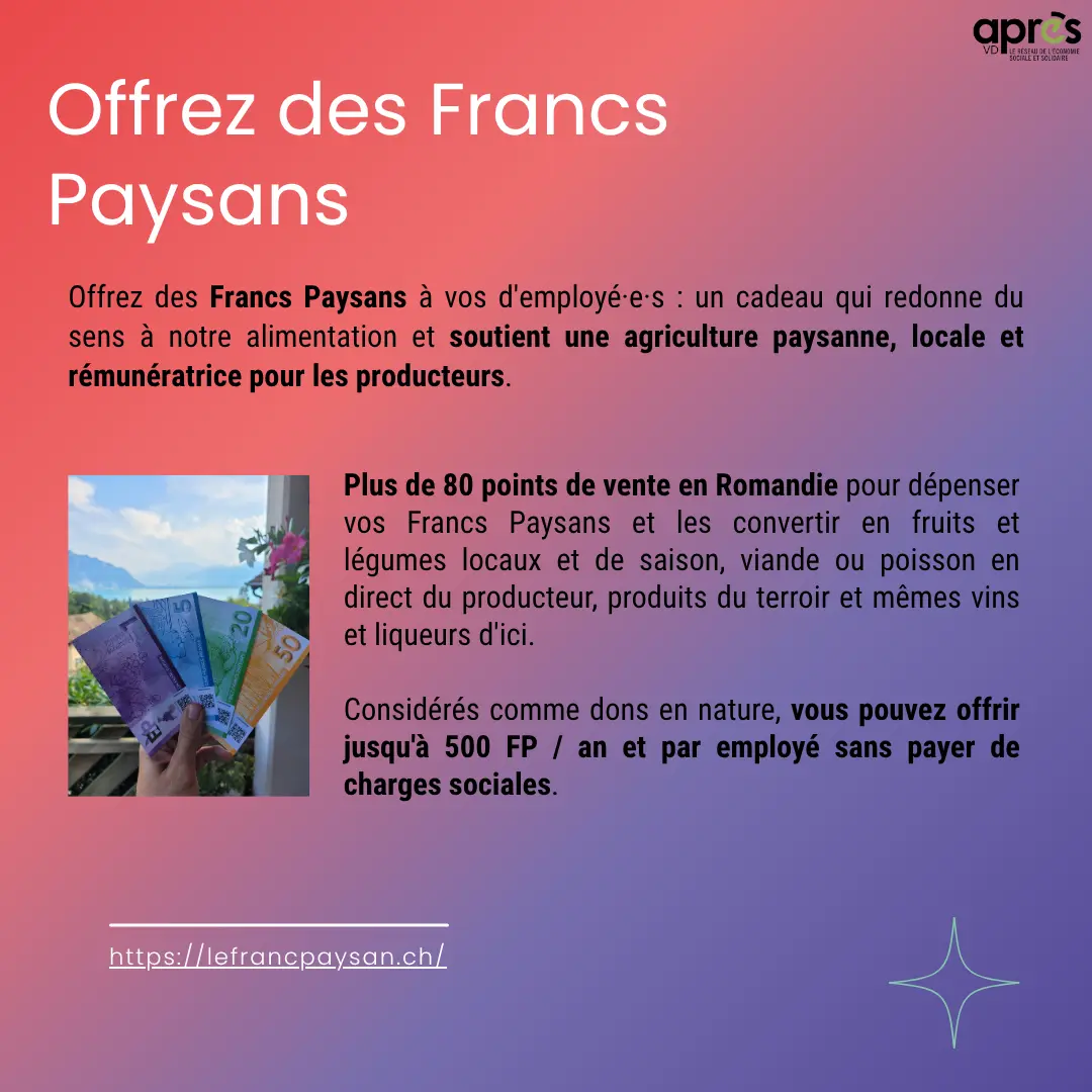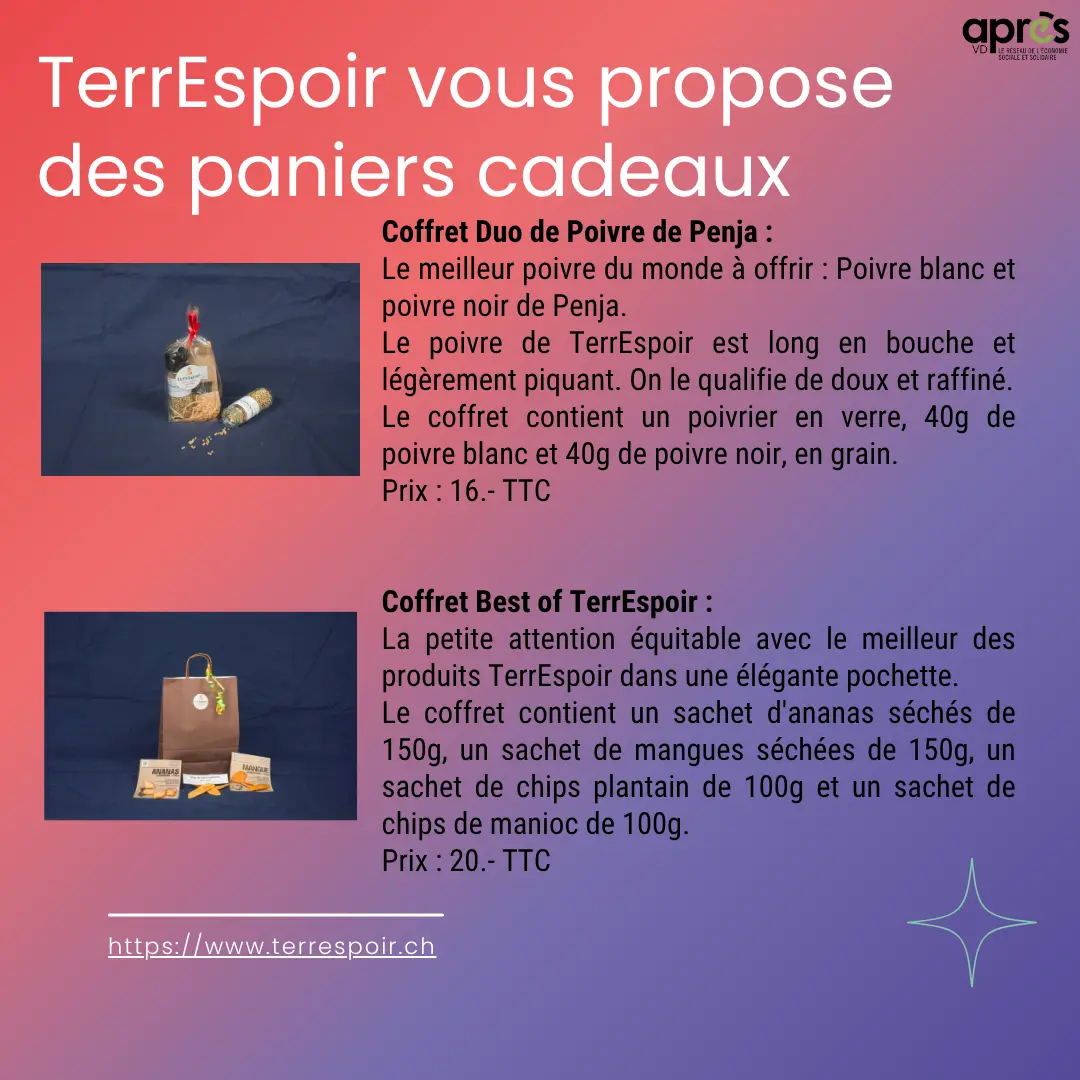 Voici les produits proposés par les membres de la Chambre APRÈS-VD, engagés pour une économie inclusive et écologique.