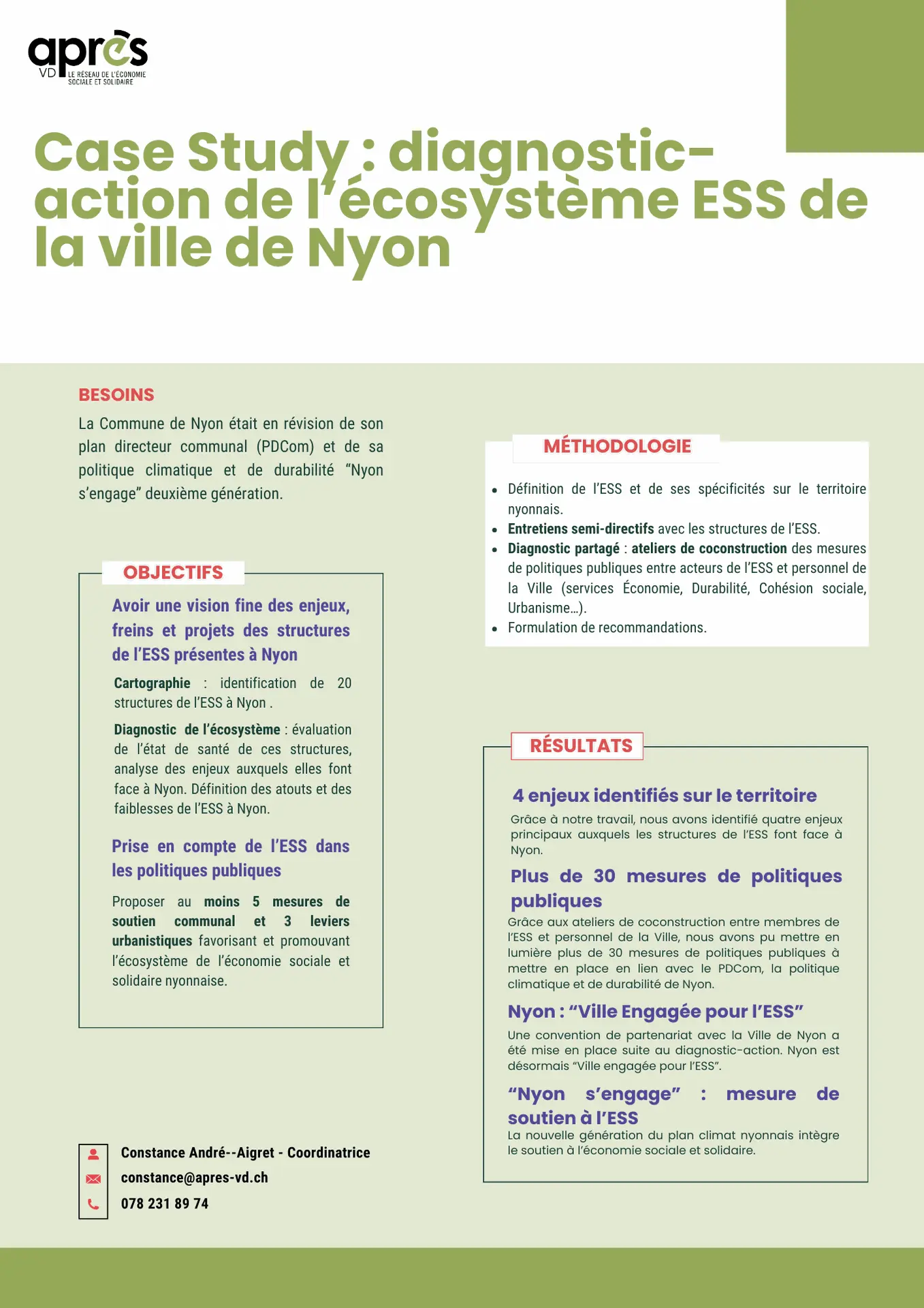 Offre de prestations «Diagnostic de l'écosystème ESS communal »